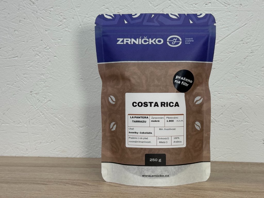 Costa Rica La Pantera Tarrazú je káva, která dokáže potěšit na první doušek. Sladkost připomínající zralé švestky a bobule se snoubí s jemnou čokoládou, díky čemuž je šálek příjemně vyvážený a elegantní. Na filtru je krásně svěží a lehká, ale potěší i jako espresso pro ty, kteří hledají jiskřivější chuťový zážitek.