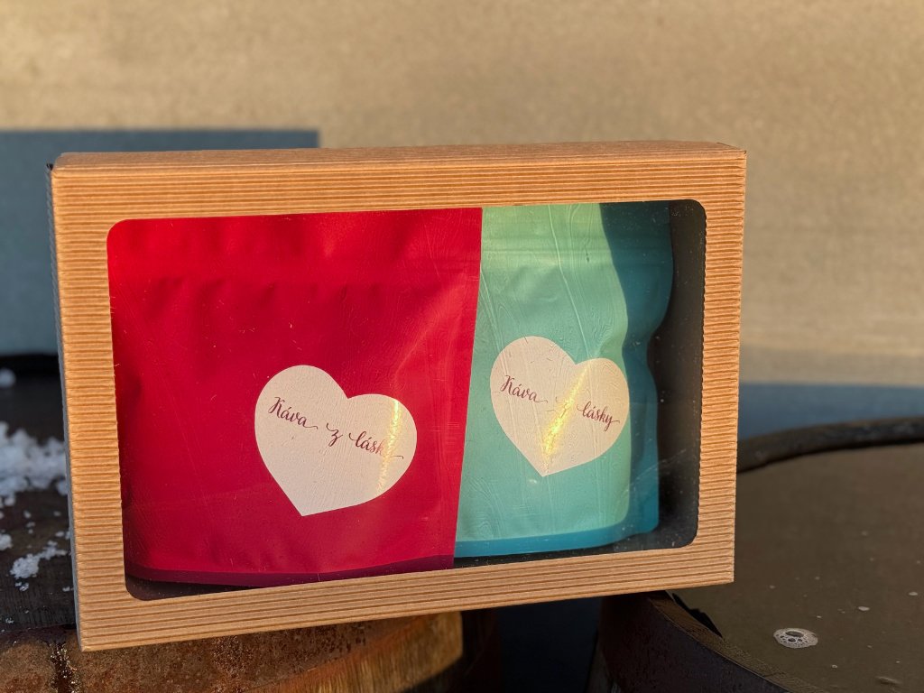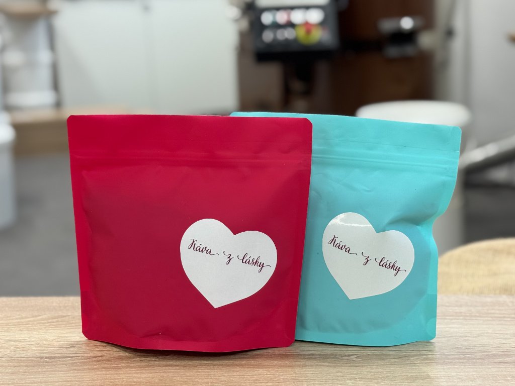 Červený sáček ukrývá Kávu z lásky – speciální kávu pocházející z ženské farmy, za kterou stojí příběh péče, poctivé práce a podpory žen v kávových komunitách.
