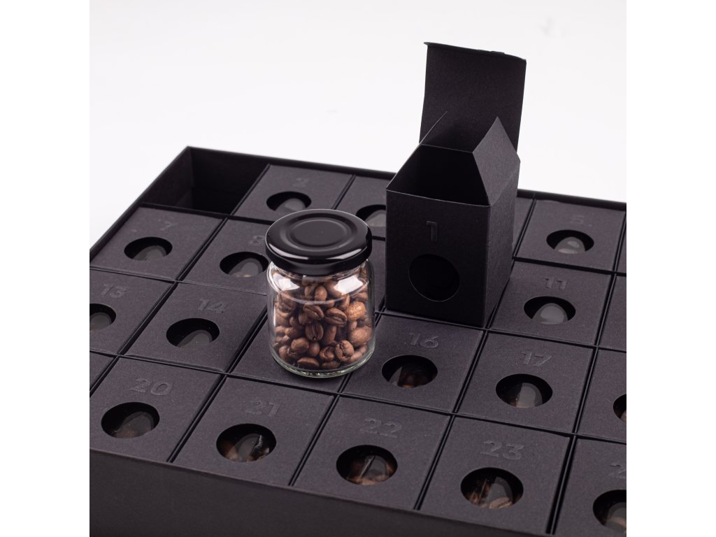 Uvnitř najdete 24 originálních vzorků kávy pečlivě rozdělených do jednotlivých skleniček. Každý den adventu vás čeká jiný šálek, jiné aroma a nové překvapení. Je to originální dárek pro kávomilce i krásný rituál, jak si zpříjemnit čekání na Vánoce.